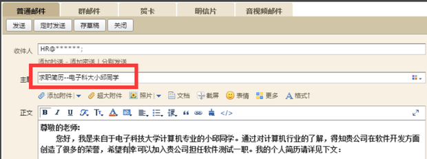 • 邮件主题:简洁明了,通常包含您的姓名和申请职位。