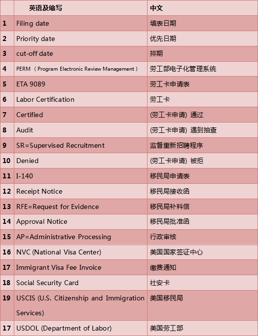 移民英语常用词汇