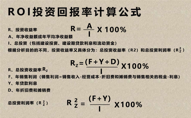 投资报酬率是一种评估投资效果的重要工具。它帮助投资者了解每单位投资所带来的收益。计算公式如下: