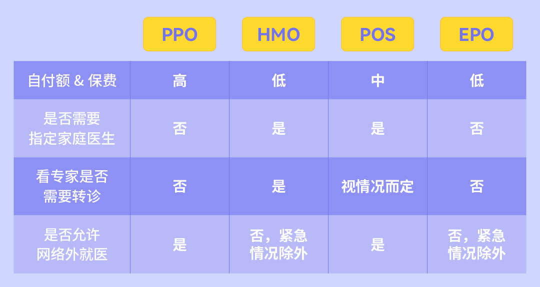 - 灵活性高:PPO允许保险客户选择网络内外的医疗服务提供者,但通常选择网络内的提供者享受更高的报销比例。